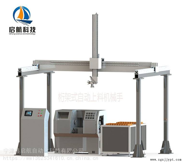 桁架機械手和數控機床緊密配合,組成無人上下料機加工系統,可以極大的提高工作效率,降低用工成本。此設備廣泛應用于數控車床、加工中心、磨床、插齒機、清潔機等設備進行加工自動化上下料。