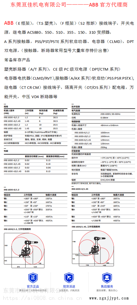 | 工作范圍 : | 1450mm | 品牌 : | ABB |