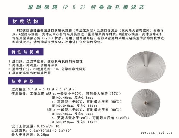 聚醚砜膜(PES)折疊微孔膜濾芯