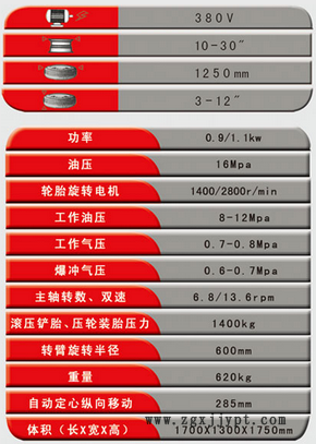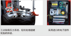 該機拆裝可達30",適用于扁平比較小的轎車、乘用車輪胎,配有真空胎充氣裝置和爆充裝置。