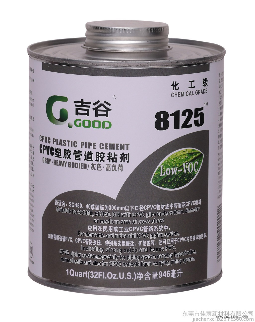 顏 色: 灰色 粘度級別: 高等負荷 有機物揮發VOC : <490ml/L ? 保質期: 2年 粘接口徑: ≤ DN 300 mm 執行標準: F-493 包 裝: QT(946mm× 12罐)