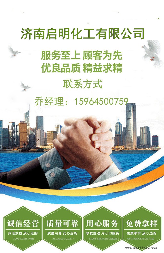 濟南啟明化工有限公司是一家從事化工生產和貿易的專業公司,并與十幾家生產企業簽訂代加工代銷協議。企業已具有20余年的化工貿易歷史,目前是省內實力化工原料貿易商。讓用戶放心的原則,誠信服務。公司秉承“顧客至上,銳意進取”的經營理念的原則為廣大客戶提供優質的服務。歡迎惠顧! 公司設有大噸位倉儲基地,占地面積2000多平方米。公司實力雄厚,并以市場為導向,經營靈活多樣、產品齊全、銷售面廣等特點,成功的建立起適應市場經濟的銷售網絡,產品銷往全國各地。 主要經營產品:聚合氯化鋁,AES、偏硅酸鈉、葡萄糖、車用尿素等上百種化工產品。主要包括食用化工,污水處理劑,電鍍原料,砼外加劑原料,環保原料,洗滌原料,磷化材料,獸藥醫藥中間體,石油助劑, 消毒產品,紡織、造紙、建筑、制革、金屬清洗化學試劑等。 經營模式:經銷批發 ,公司規模大,產品齊全,質量標準,貨真價優,服務周到。走一走,看一看、比一比、算一算,同樣公司比品種,同樣品種比質量,同樣質量比價格。