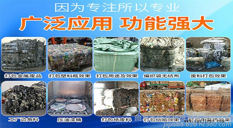 液壓打包機適用于秸桿、牧草、廢紙打包、棉花打包、服裝打包、秸桿打包、塑料打包、羊毛打包、可回收垃圾打包,亦可應用于棉、羊毛、廢紙箱、廢紙板、紗線、煙葉、塑料、布匹、編織袋、針織絨、麻、麻袋、毛條、毛球、繭、蠶絲、啤酒花、廢塑料袋等一切輕泡、松散物料等松軟類物料進行壓縮打包,包型緊湊,整齊美觀,可大幅度降低運輸成本,是棉產區、紡織企業、服裝廠、廢舊物質回收站和其他各種輕工業企業必備的生產工具。