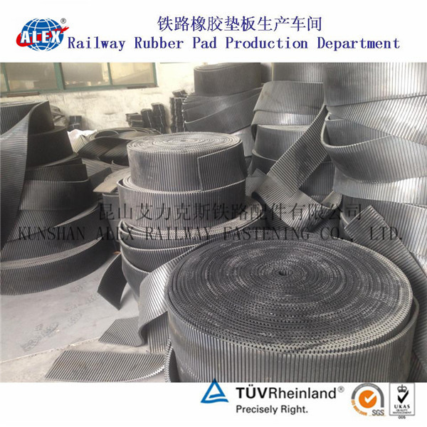 鐵路軌道結構用橡膠墊板(以下簡稱“橡膠墊板”)是軌道結構中的重要部件,安裝在鋼軌和混凝土軌枕之間,它的主要作用是緩沖車輛通過路軌時所產生的高速振動和沖擊,保護路基和軌枕,并對信號系統進行電絕緣,另外橡膠墊板由于長期裸露于大氣中,因此要求具有良好的耐自然老化及耐寒、耐熱性能,地鐵用橡膠墊板具有良好的減震低噪音等性能。