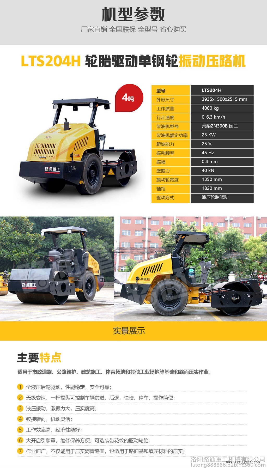 LTS204H輪胎驅動單鋼輪振動壓路機,適用于市政道路、公路維護、建筑施工、體育場地和其他工業場地等基礎和路面壓實作業。