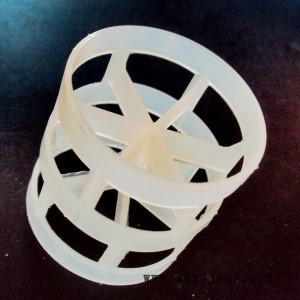 塑料鮑爾環(huán)(Pallring)是在拉西環(huán)的壁上開一兩層窗口而成,上下兩層窗孔錯(cuò)開排列。開孔切開的窗葉片一邊與環(huán)壁母體相連,另一邊彎向環(huán)內(nèi),在環(huán)中心幾乎對(duì)接,上下兩層葉片的彎曲方向相反。由于開孔,溝通了環(huán)內(nèi)外表面和空間,使得液體和氣體均勻分布,因此,阻力、通量和傳質(zhì)效率均比拉西環(huán)顯著改善。