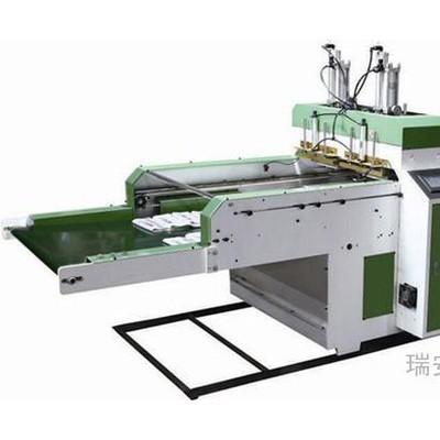 3、主機采用進口變頻器模擬調(diào)速、自動供料系統(tǒng)使制袋平穩(wěn),封切準(zhǔn)確。自動沖床對折裝置、輸送帶送袋功能,易于收集。