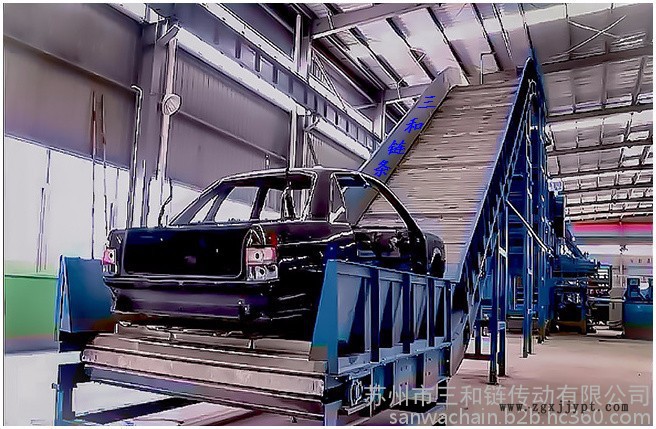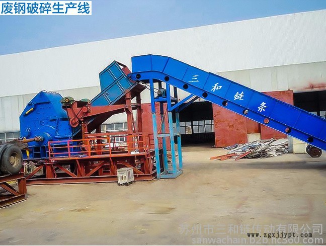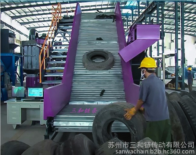 蘇州三和鏈條廠專業生產廢鋼、廢舊輪胎、廢舊汽車破碎線的上料/進料鏈板輸送機鏈條。節距有160、250、300mm,具體尺寸如下: