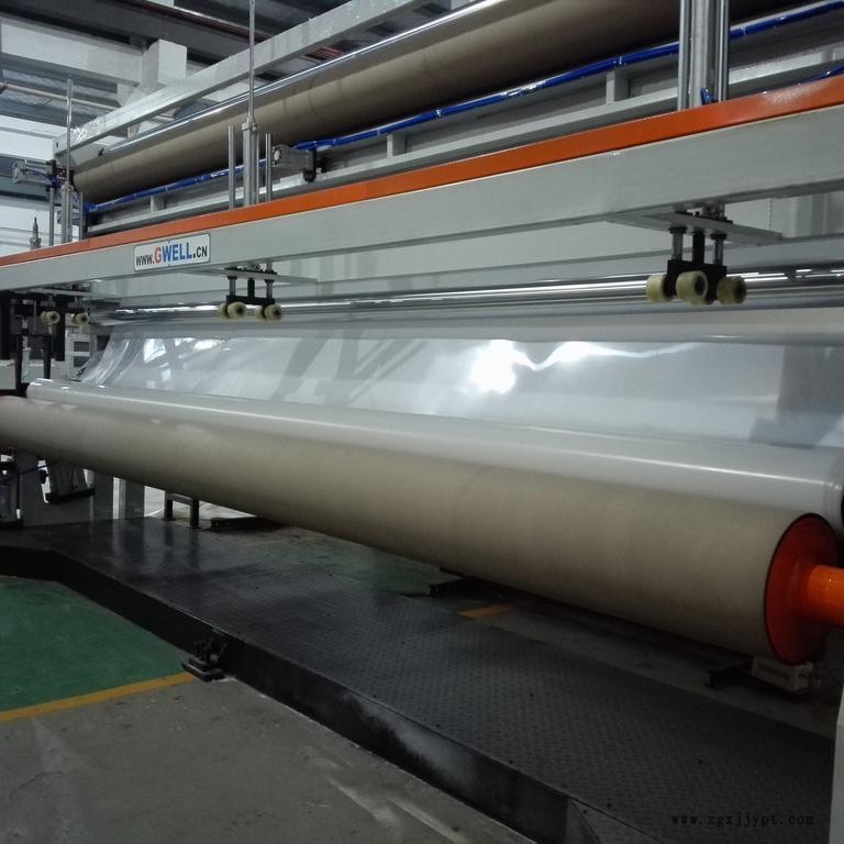 蘇州金韋爾機械有限公司可以提供擠出機直徑為250mm的大型單螺桿擠出機,模具寬度8.4m及寬度8.5m的立斜式三輥壓光機組成的8m防水卷材土工膜生產線.