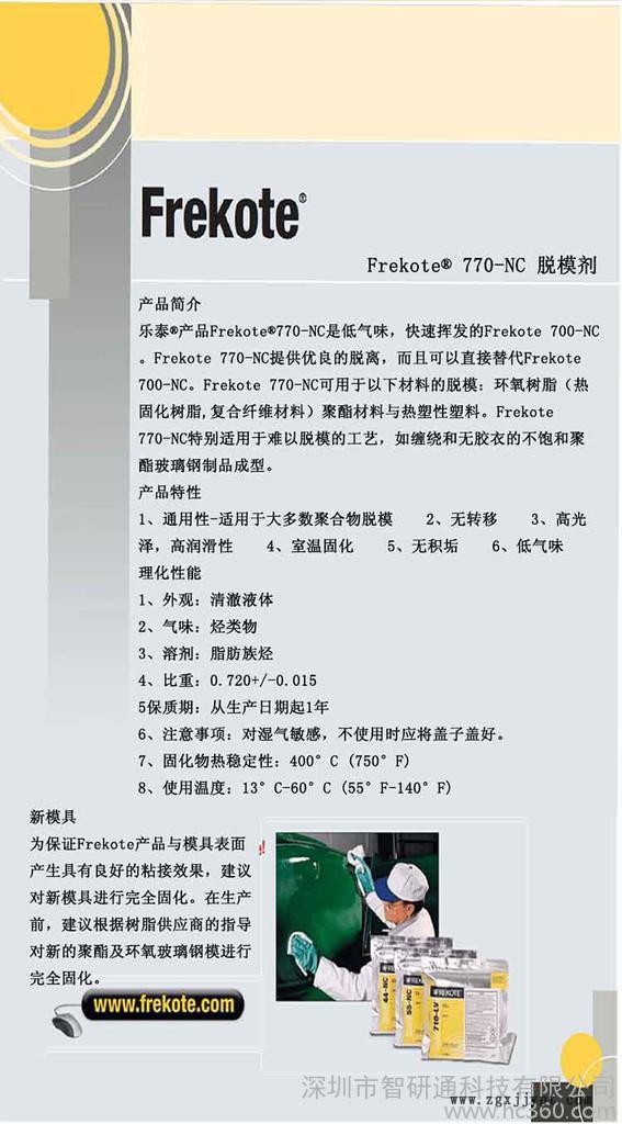 漢高樂泰®產品Frekote®770-NC是低氣味,快速揮發的Frekote 700-NC。Frekote 770-NC提供優良的脫離,而且可以直接替代Frekote 700-NC。Frekote 770-NC可用于以下材料的脫模:環氧樹脂(熱固化樹脂,復合纖維材料)聚酯材料與熱塑性塑料。Frekote 770-NC特別適用于難以脫模的工藝,如纏繞和無膠衣的不飽和聚酯玻璃鋼制品成型。【產品特性】