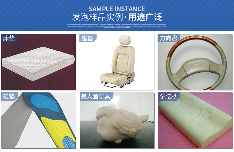 | 產(chǎn)品用途 | 汽車腳墊/座椅/單車座墊、汽車方向盤、枕頭、床墊等軟泡慢回彈行業(yè) |