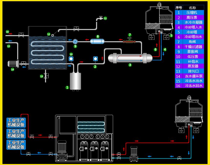 冷水機別名:俗稱冷卻循環(huán)水機、水冷機、冷凍機、制冷機、冰水機、凍水機、冷卻機等。