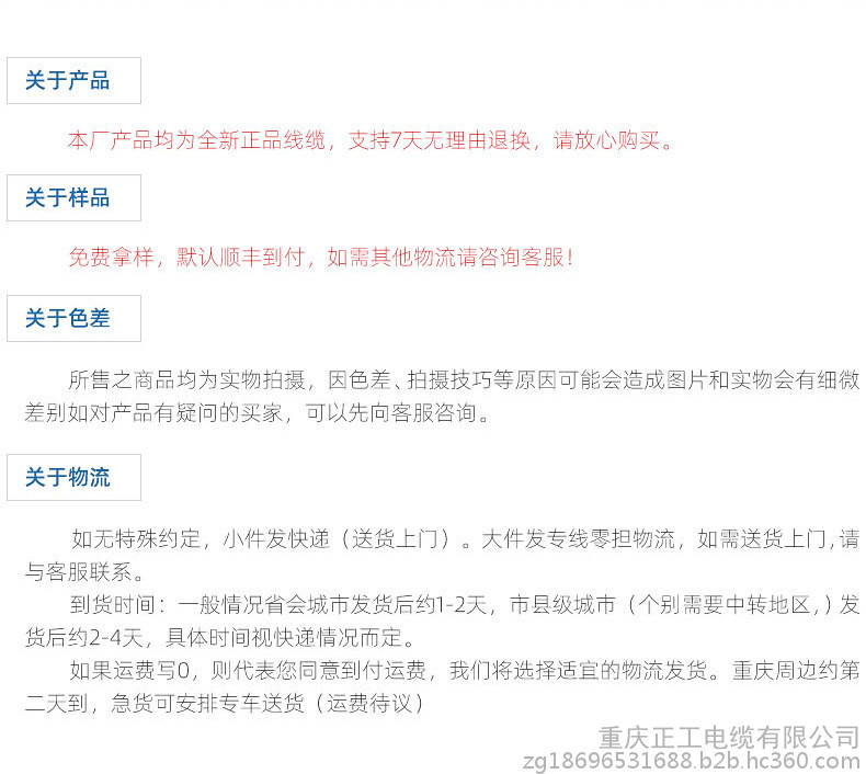 | 品牌* | 正工電纜 |