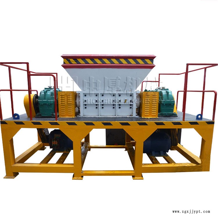 撕碎機又叫輪胎撕碎機、金屬撕碎 機、剪切式破碎機通過剪切、撕裂和擠壓達到減小物料尺寸。經過中厚機械集團公司多年研究與實踐,并根據當前實際情況進行改進研發,推出技術成熟和設計先進 的雙軸撕碎機系列,為廢物回收利用前期的破碎,減容處理提供了質量可靠的理想設備。廣泛應用于廢塑料、廢橡膠、廢輪胎、報廢轎車、廢報紙、廢書本、 木材、油漆桶、廢棄家電外殼(塑殼、金屬殼)、廢舊電路板(線路板)、廢舊電纜線和其它大體積廢棄物。